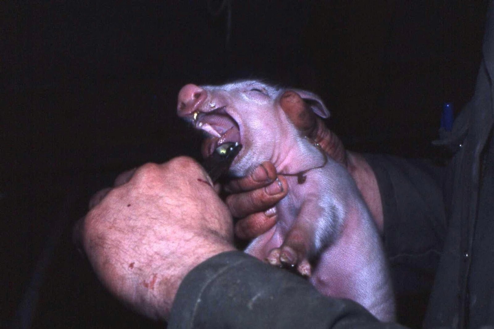 Watch what happens when you castrate a piglet without anesthesia. He screams. Not a normal pig sound, a piercing, sustained scream. His heart rate spikes to over 200 beats per minute. His stress hormones surge. He thrashes violently, trying to escape. Some piglets go into shock.